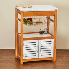View AllView the collection NewWe bring forth this convenient and contemporary kitchen trolley to add to the convenience of your kitchen while allowing you to smartly store utensils for a neat look. The strong MDF construction with Pine wood, which is resistance to water, corrosion, and termites. The steel wired basket provides a rust-free storage. The Chrome polishing on the stand increases the hardness, durability, and corrosion resistance of a surface, while also creating a shiny and smooth surface that is easier to clean. A perfectly heighted, user friendly and easy to assemble this multipurpose and huge store space with a drawer storage, pull out basket, cupboard drawer storage and an open storage shelf that keeps your kitchen tidy and organised, a slim design construction gives superiors kitchen storage solutions especially where is a space crunch. Designed perfectly to be used in Kitchen, hall, home office or bedrooms. It is ideal for storage of fruits, vegetable, oil, and spice bottles etc-convenient and contemporary kitchen storage trolley to add to your kitchen decor while allowing you to store your essentials with convenience.