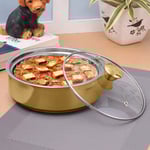 CROWN CRAFT Roti Server Gold Stainless Steel Server with Glass Lid - 1100ml