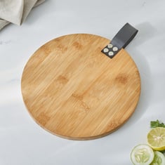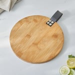 - Round Bamboo Chopping Board with Black Leather 22 cm L x 1.5 cm W