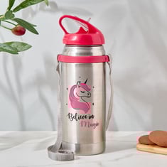 Stay hydrated and stay happy with this stainless steel water bottle. Designed to keep little ones hydrated and happy, this bottle features eye-catching prints and a spill-proof design, making it the perfect companion for little adventurers on-the-go. With its colourful printed design, this bottle appeals to their imagination and encourages hydration in a visually engaging way. Whether it's for school, sports, or playtime adventures, this durable bottle is ready for any journey.