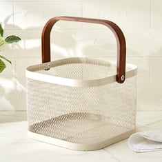 This basket crafted from iron and a smooth acacia wood handle blends durability with natural elegance. Ideal for storing fruits, pantry items, or kitchen essentials, it’s a versatile accessory that keeps your space neat while adding a rustic-modern touch.