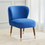 Enhance your living room with this accent chair from Home Centre. It;s frame is made of mango wood, a strong and durable material ideal for fine furniture. The seat is upholstered in anti-microbial, anti-allergic polyester fabric with velvet finish and features elastic webbing straps in a grid pattern for semi-firm comfort and shape retention. High-density plywood adds structural stability, while virgin PU foam provides a smooth, comfortable finish.