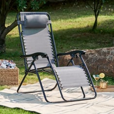 Sit back and unwind in this zero-gravity chair. Boasting a mild steel frame, this chair is powder coated for a shiny matt finish and to provide additional protection from heat. It features a textilene seat and backrest that is a mixture of polyester fabric and a PVC coating. The fabric is resistant to elements, tears, and UV rays, making it suitable for the outdoors.