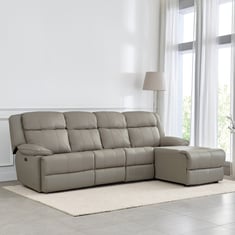 Torino Half Leather 3-Seater Electric Recliner with Right Chaise - Grey