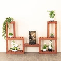 This ladder planter stand is made from Shorea which is a hardwood with strong nailing and screw holding property. Shorea is resistant to damage from insects, fungus and moisture decay. Shorea is hardwood with strong nailing and screw holding property. Shorea is resistant to damage from insects, fungus and moisture decay. Gives a matt single tone premium look to the wooden furniture. An additional layer of protective coating is applied to make the furniture heat resistant. This helps to enhance looks & helping to increase durability. Solid wood is stained & covered with a protective layer for making the furniture scratch, heat and stain-resistant helping to increase durability. All panels are pretreated with industry-standard chemical composition thereby making the core resistant to termite, borer and other mites. Furniture plinths/panels/legs are enabled with built-in PVC spacers to avoid direct contact with the floor, thereby ensuring no direct contact with water, dust etc., also levellers.