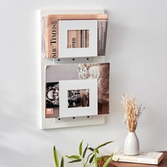Bring home this wall mounted magazine holder from Home Centre, made with MDF that has a stronger core with strong screw-holding capacity. The mild steel frame provides a good load-bearing capacity. A high glossy polymer finish offers a smooth touch and reflective feel to the furniture in both solid and neutral colours, spray painted uniformly on both the panel fronts and along the edges for a seamless look. It can be fixed in the living room, door front, or garden area depending on the organizing of household decor items.