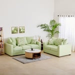 Cane Connection Fabric 3+2 Seater Sofa Set with Cushions - Green