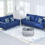 Ocean Fabric 3+2 Seater Sofa Set with Cushions - Blue