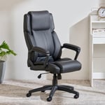 Equipped with high-efficent leatherette, which is resistant to stains, moisture, and spills, This office chair is upholstered in faux leather, which traps body heat between your body and the chair, causing you to sweat and allowing better airflow to your back, which helps keep you cool and comfortable. Made with polyurethane foam, this provides flexibility and resilience and provides support through an ergonomic seat, backrest, and headrest, protecting the spine and increasing comfort.