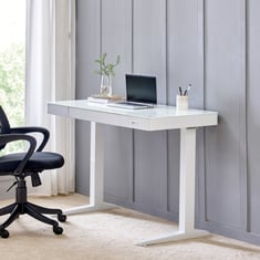 Trooper Tempered Glass Top Smart Study Desk - White