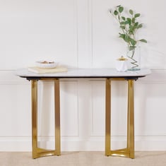 Add a hint of finesse to your living room decor with this classy console table that has been crafted from fine quality marble material into a contemporary design with a sturdy base that brings about a stylish yet convenient vibe to your room.