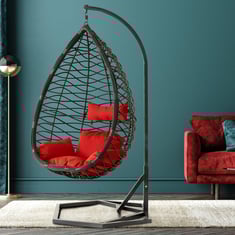 Chair frame: The chair frame is made of high-quality CRCA powder-coated metal legs with the rugged build quality. Chair seat: The chair seat is made of 100% virgin HDPE Poly rattan & cushion with 23D foam draped with fabric. The hanging chair comes in a compact size with a load-bearing capacity of 100 to 120 kgs.