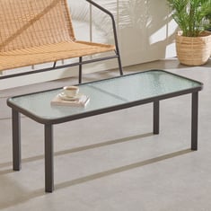 Enhance your outdoor space with this stylish coffee table. It features a toughened glass top that is more heat- and pressure-resistant than standard glass. The frame is crafted from high-gauge, non-magnetic mild steel for exceptional durability and load-bearing capacity. Its compact design complements garden sofas, while the wooden legs ensure stability on various surfaces, including natural grass, synthetic grass, and hard flooring. This combination of materials delivers both functionality and elegance for indoor or outdoor use.