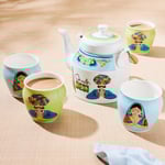 Enhance your tea time with this beautifully intricate tea set from Home Centre. Made of sturdy bone china material, this tea set is easy to handle, making your tea time fun and relaxing. This set comprises a printed tea pot along with four kulhad glasses.