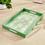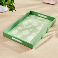 Serve drinks or snacks in style with this tray. It is made of MDF that is durable and easy to maintain. The floral prints add to the elegance, while the inbuilt handles provide convenience.