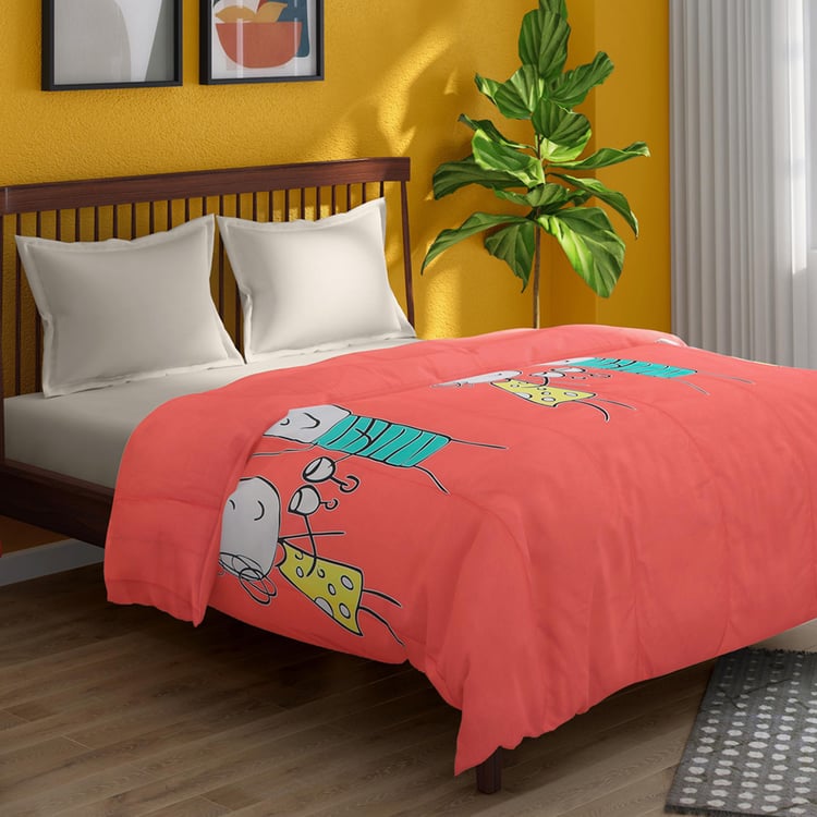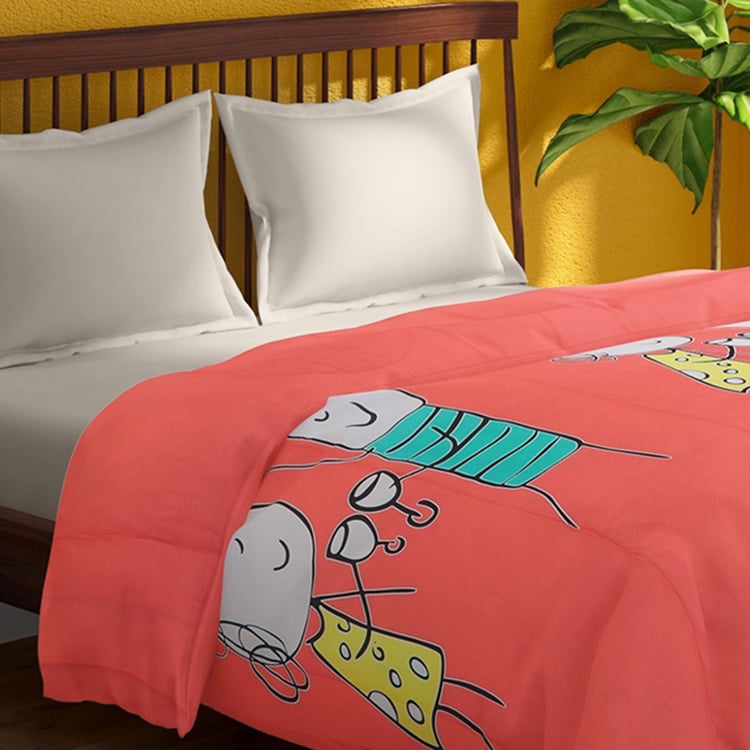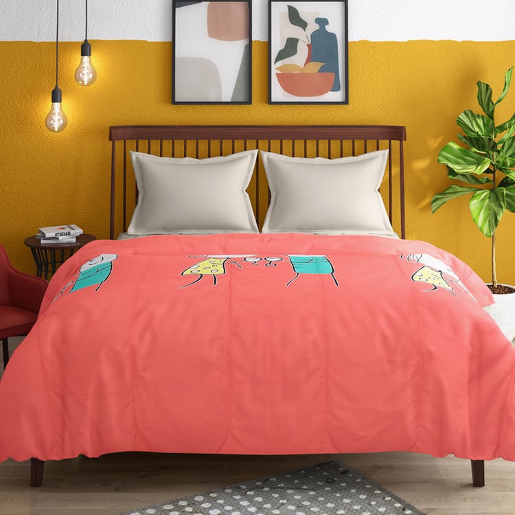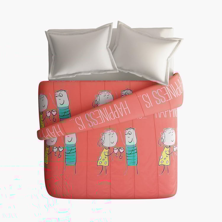PORTICO Happiness Is Pink Printed Cotton Double Comforter - 264x274cm