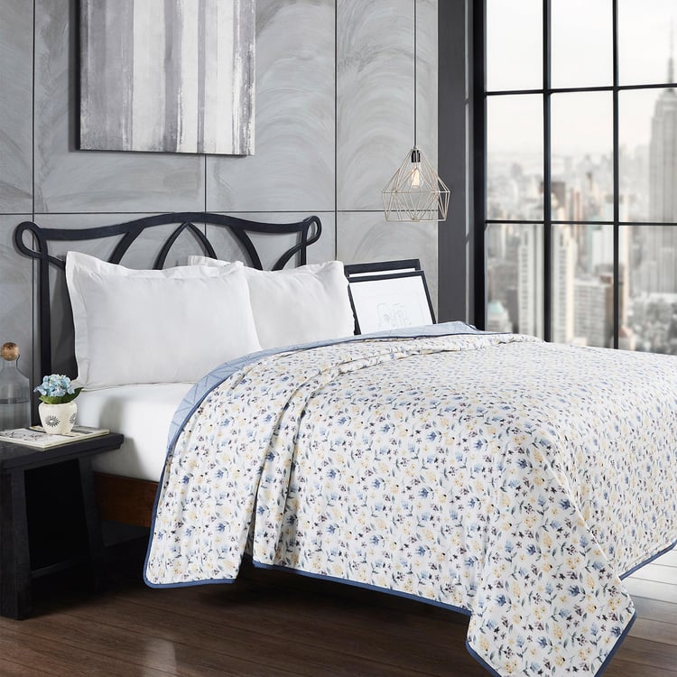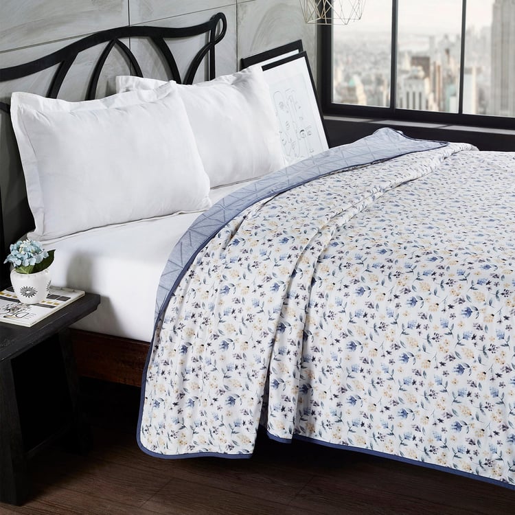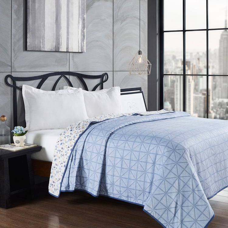 TRIDENT Signature Blue Printed Cotton Reversible Double Bed Dohar