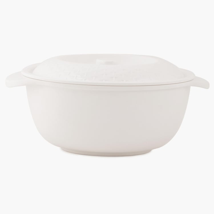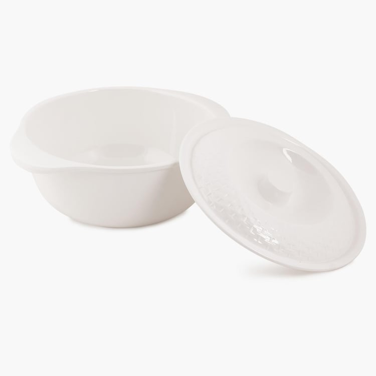 Composed of 100% food grade Melamine, this Serving Bowl comes with a lid and easy grip handles.