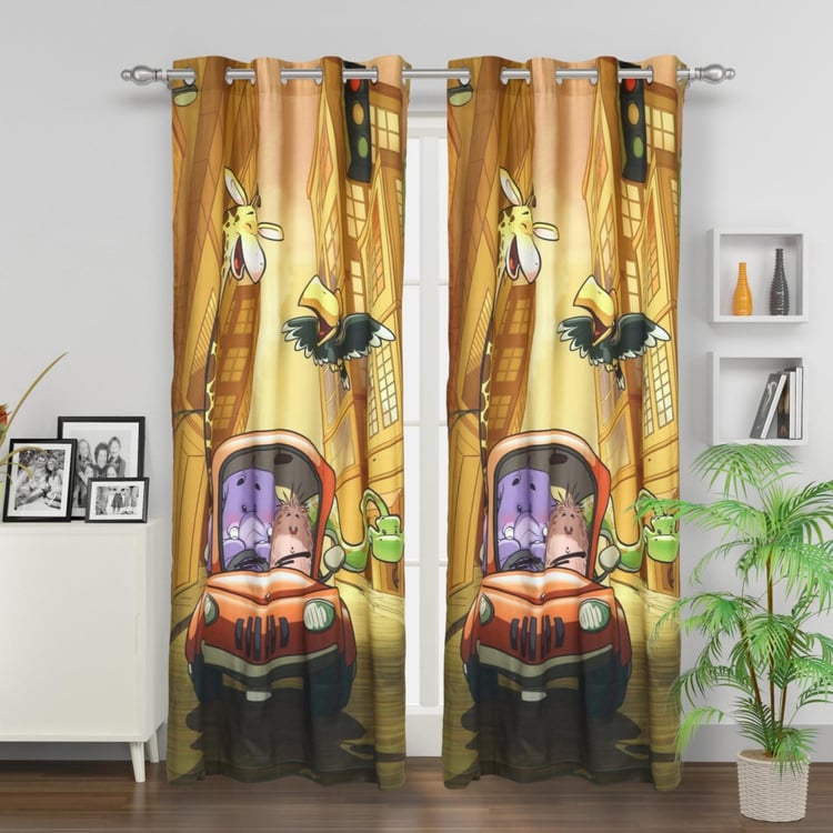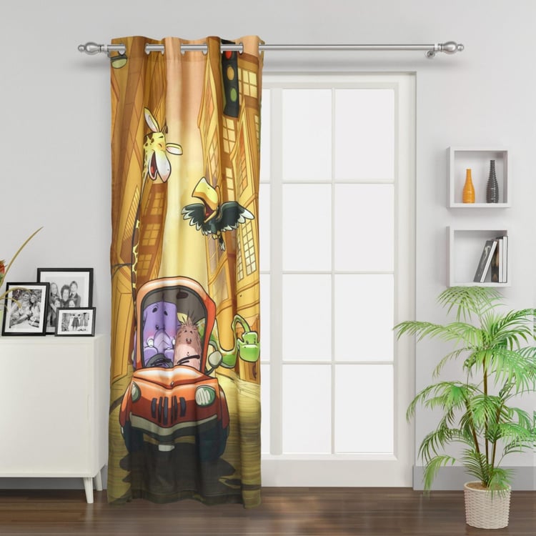 Kids City Goes Wild Kids Toon Car Printed Single Door Curtain