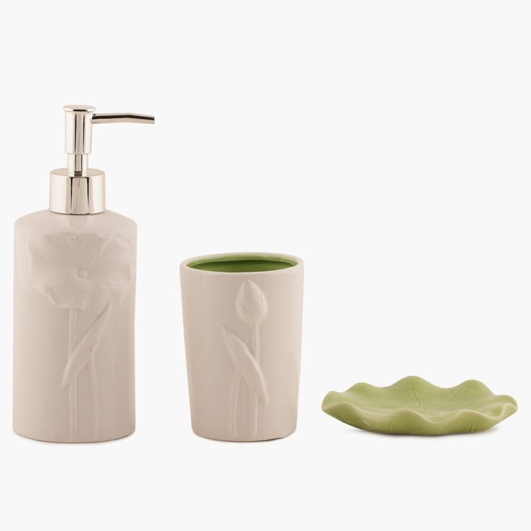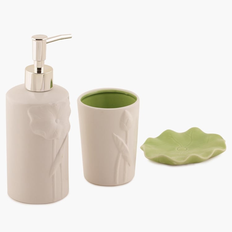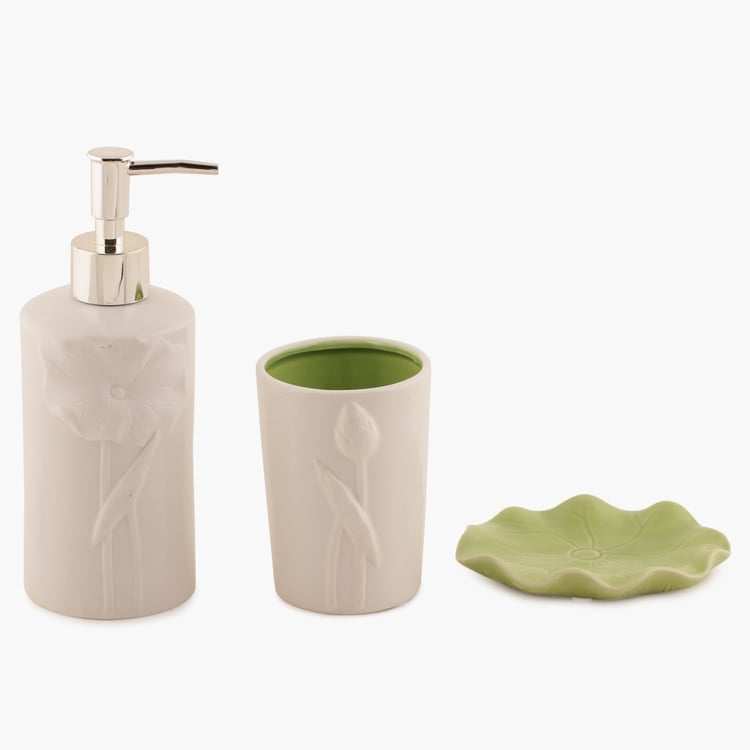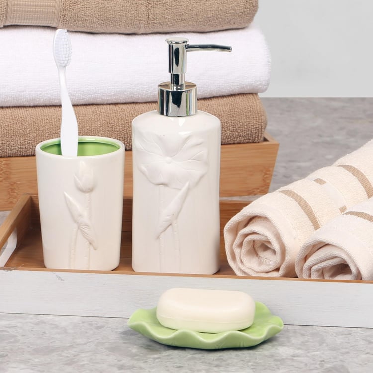 Moulded sleekly of fine composite material, this Ceramic Bath Set comprises of a Soap Dispenser, Soap Dish and Tumbler. This elegant piece promises durability and longevity.