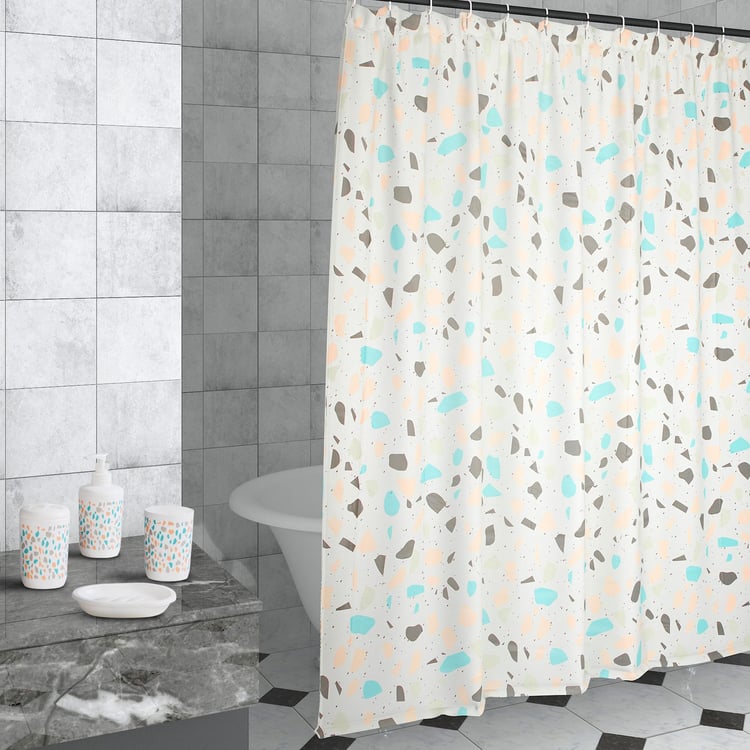 1 Soap Dispenser, 1 Soap Dish, 1 Tumbler, 1 Tooth Brush Holder, 1 Shower Curtain with Hooks