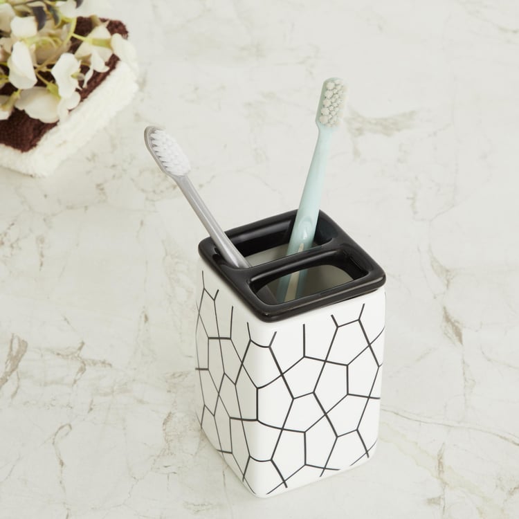 Designed with a sleek finish and a printed hue, this holder keeps your brushes and toothpaste in an organized manner, making your bathroom look tidy.
