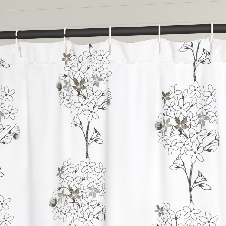 Mandarin Printed Single Pc. Shower Curtain - 240 cm x 180 cm - Polyester - White