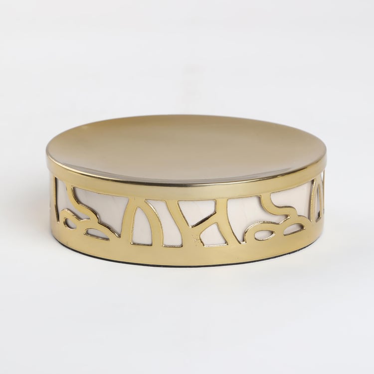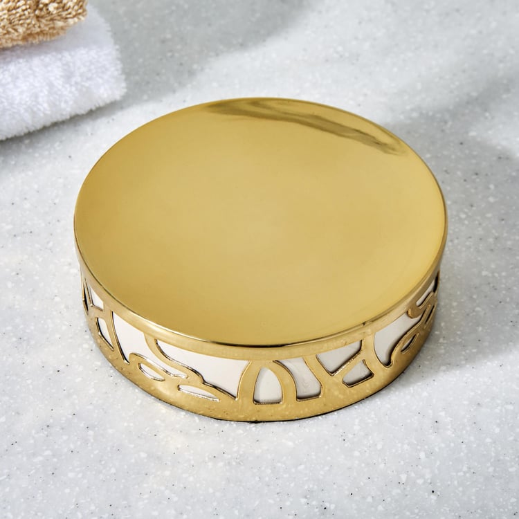 Add an opulent touch to your vanity counter or bathroom shelf with this soap dish. It is made of stainless steel which is durable and easy to maintain. The round profile features cut-outs on the sides for added style. This soap dish adds elegance to your decor as well as prevents scum formation to protect your counter.