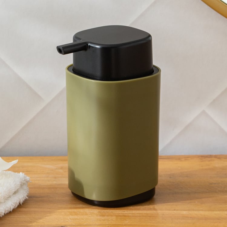 This soap dispenser combines durable ABS construction with a sleek pump for lasting style and functionality in your bathroom.