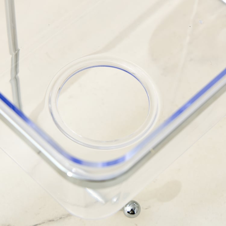 This 2-tier caddy features a durable iron frame, plastic shelves, and added hooks for extra storage. It provides practical organisation and versatile use in small spaces.