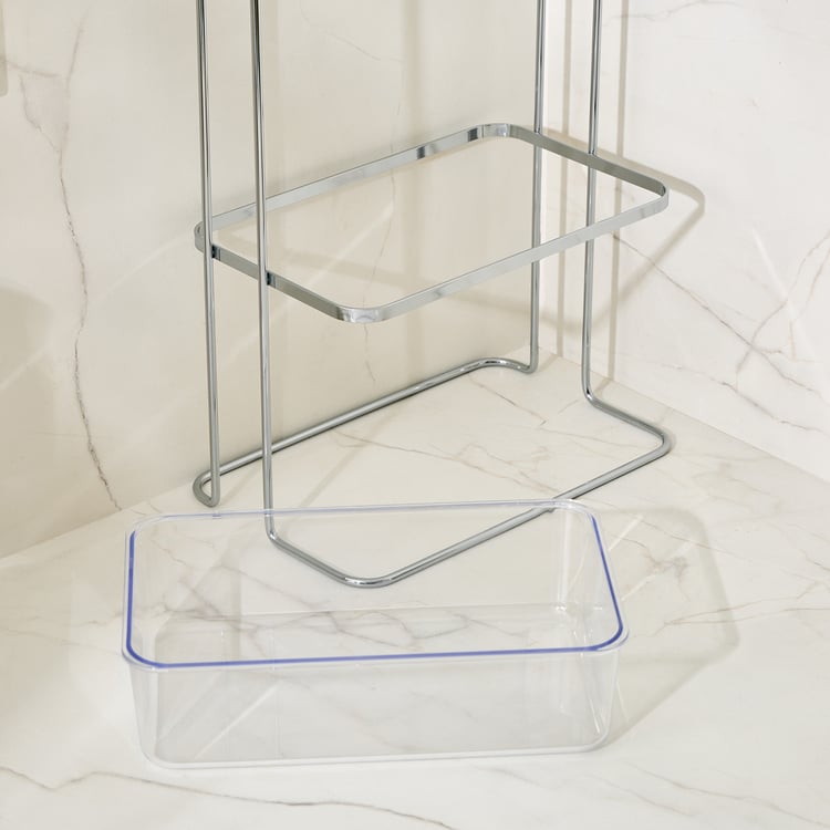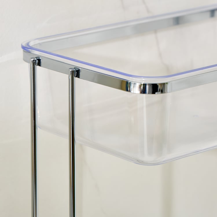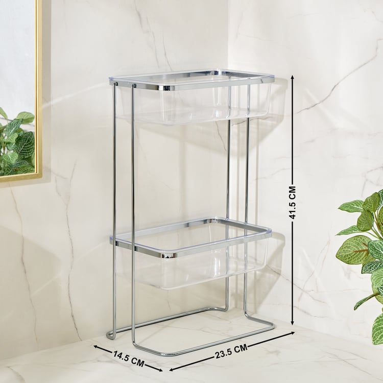 This 2-tier caddy features a sturdy metal frame with durable plastic shelves. It offers space-saving storage, easy maintenance, and organised convenience for bathrooms.
