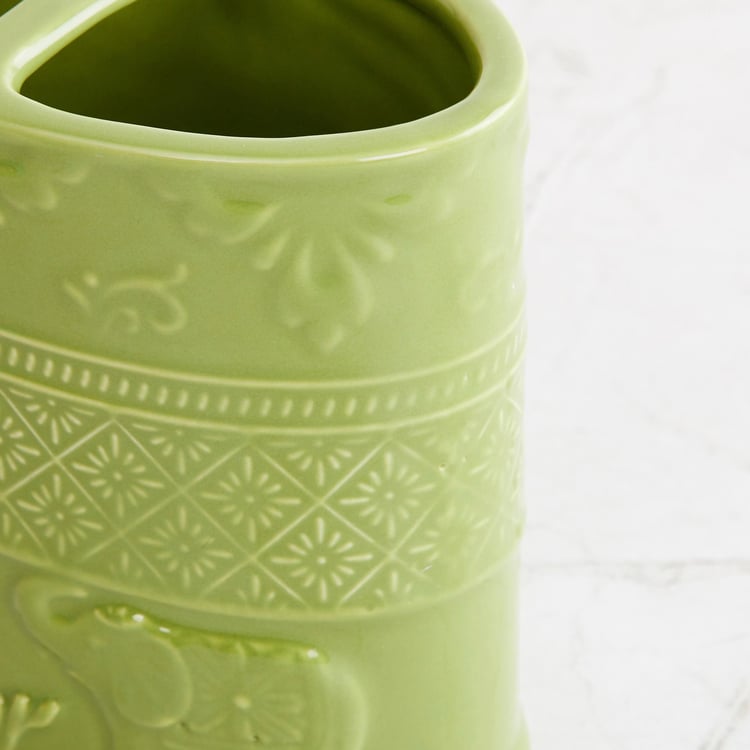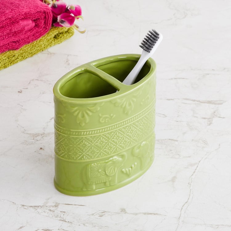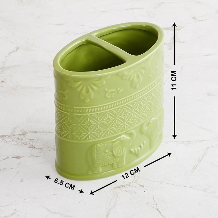 Store your bathroom essentials like toothbrushes and toothpaste in this toothbrush holder. The textured detail makes it a stylish pick.