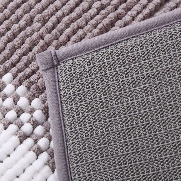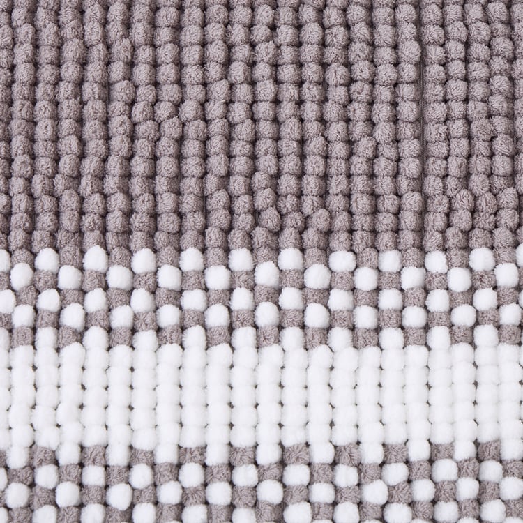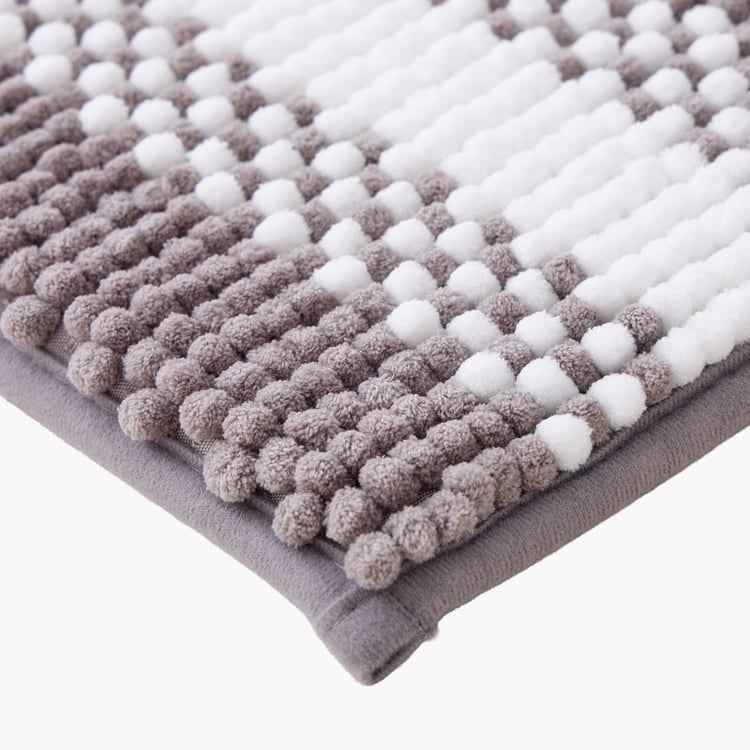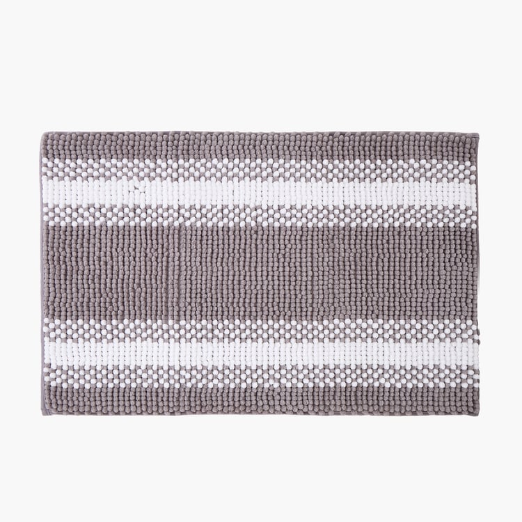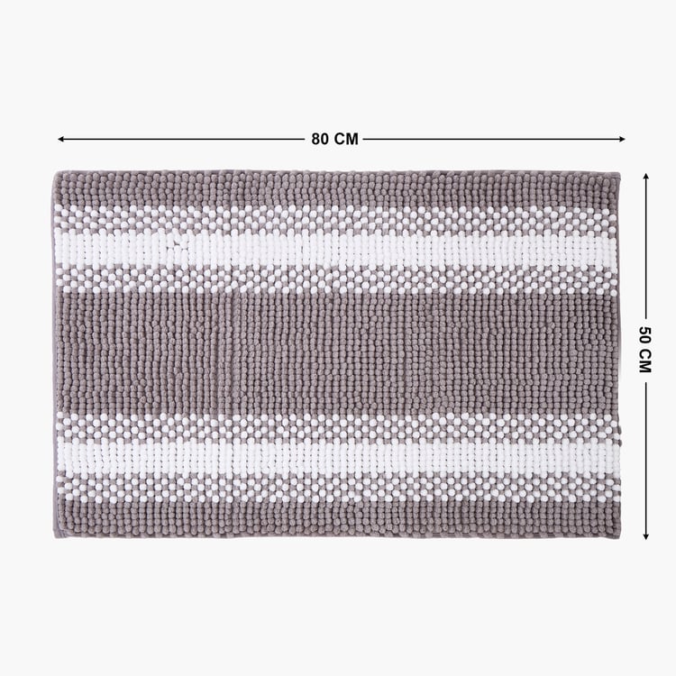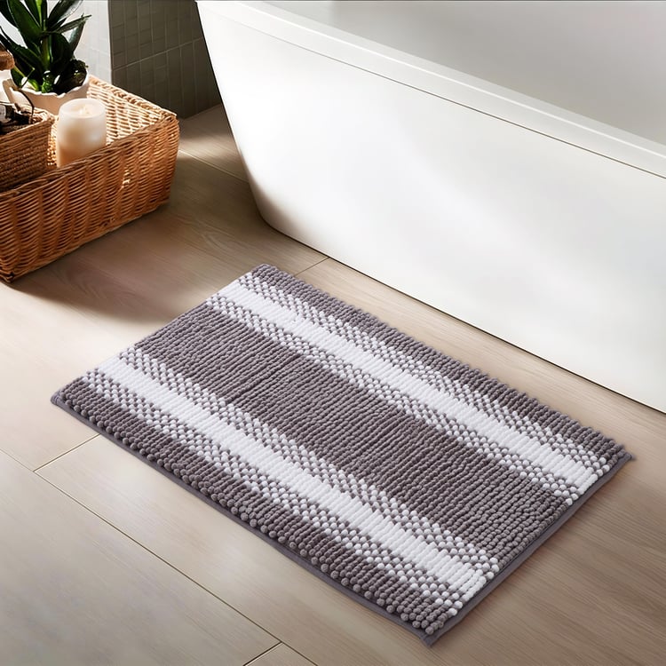 This striped chenille memory foam bath mat, crafted from soft polyester, offers plush, cushioned comfort as you step out of the bath. Highly absorbent with a non-skid backing for safety, it dries quickly and brings both comfort and convenience to your bathroom.