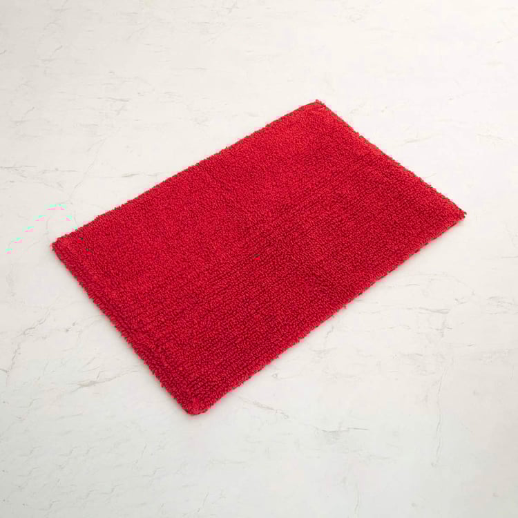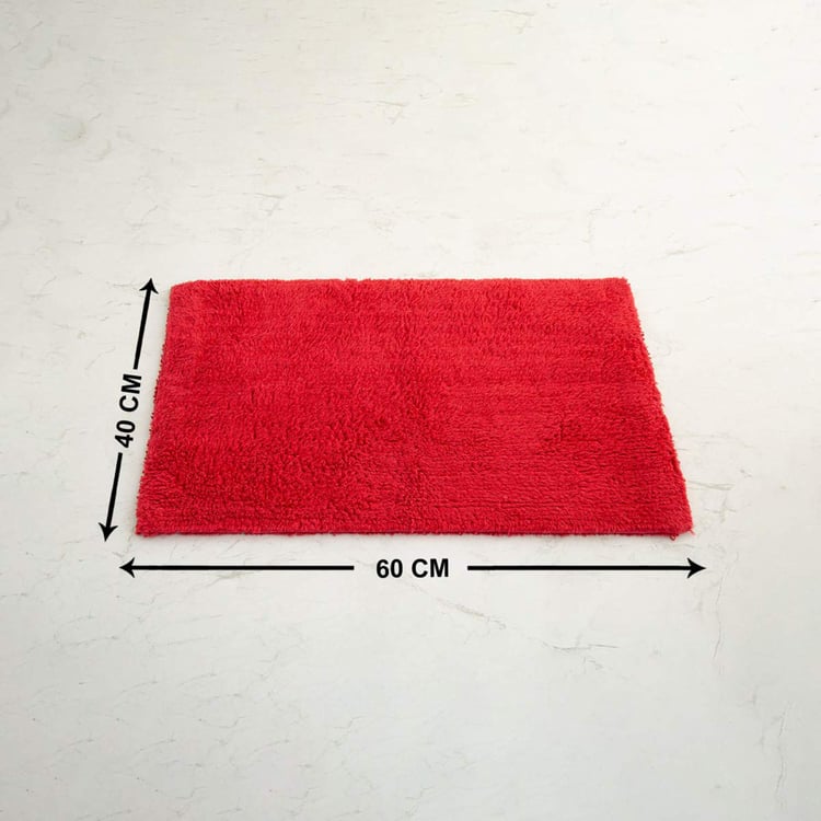 Colour Connect Red Cotton Solid Bath Mat - 60x40cm