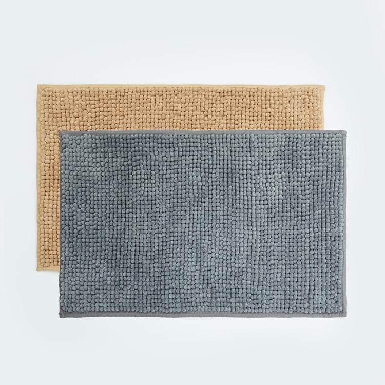 Fiesta Poppy Grey And Beige Quick Dry Bathmat - 40 x 60 cm- Set Of 2