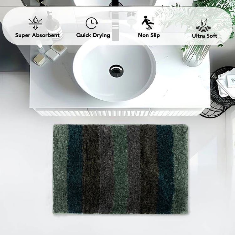 LUXE HOME Jericho Microfibre Striped Anti-Slip Bath Mat - 60x40cm