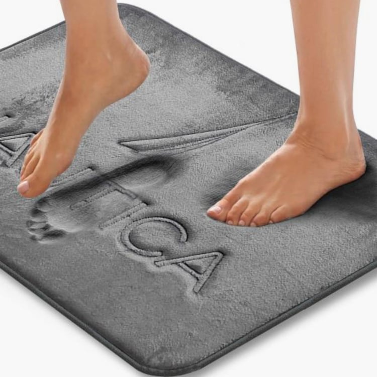 Add a hint of luxury to your bathroom space with this bathmat. It features a fabric top cover that envelops memory foam and debossed detailing. This mat comes with a rubber backing for added safety.