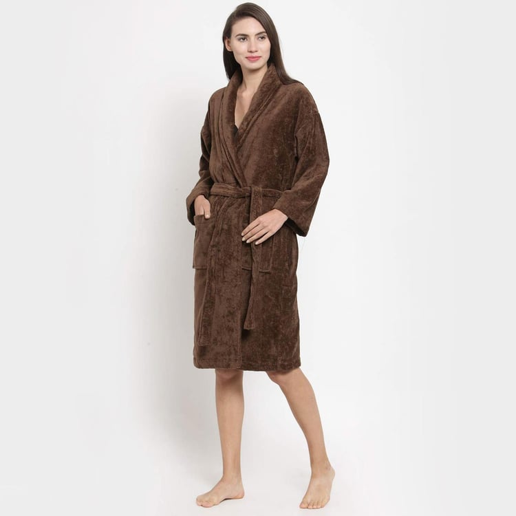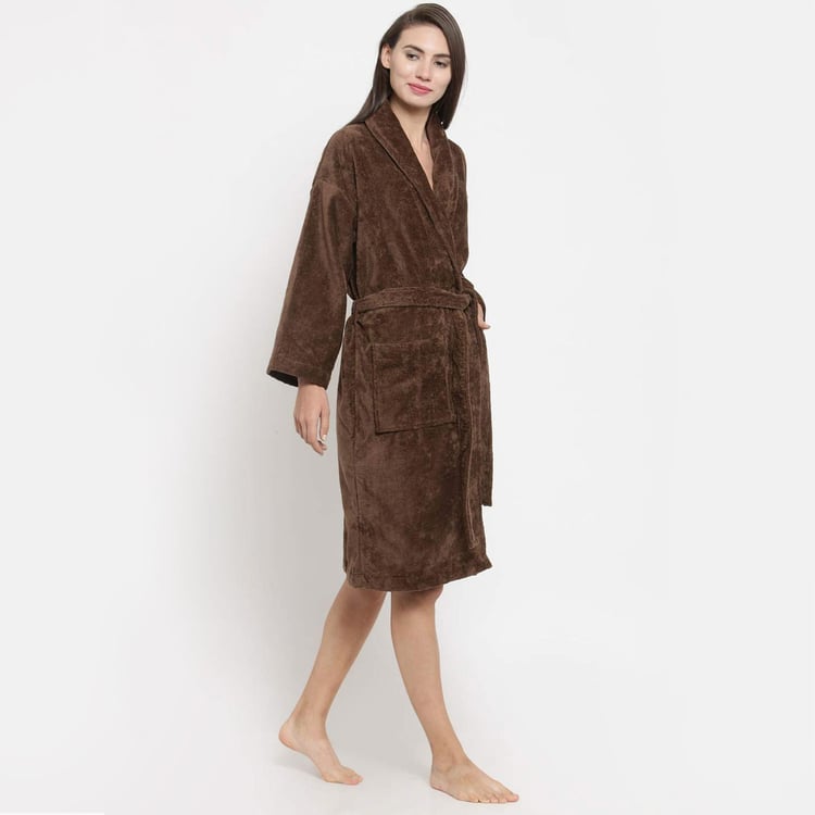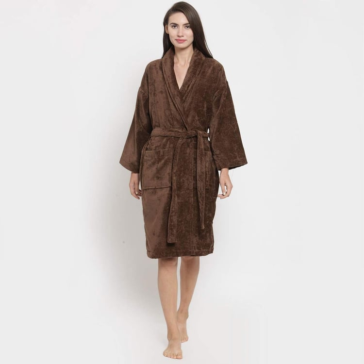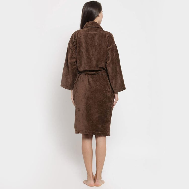 TRIDENT Classic Brown Solid Cotton Bathrobe