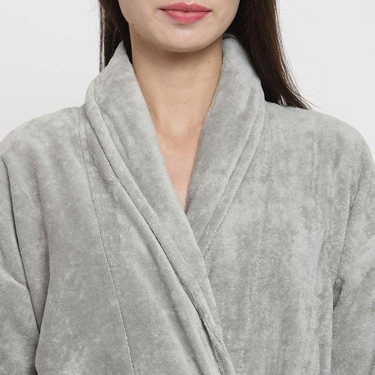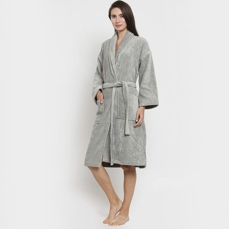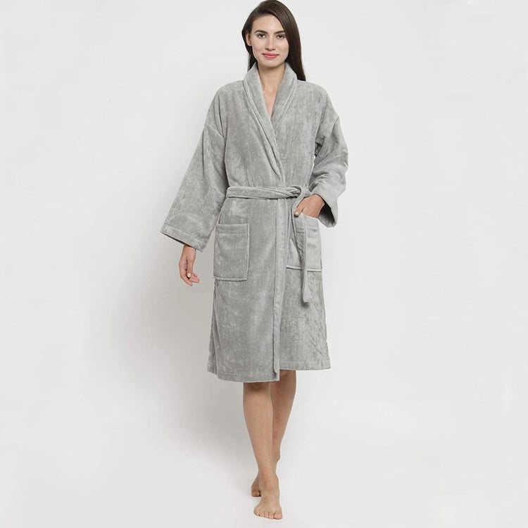 TRIDENT Classic Grey Solid Cotton Bathrobe