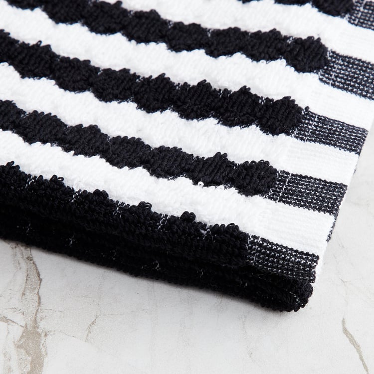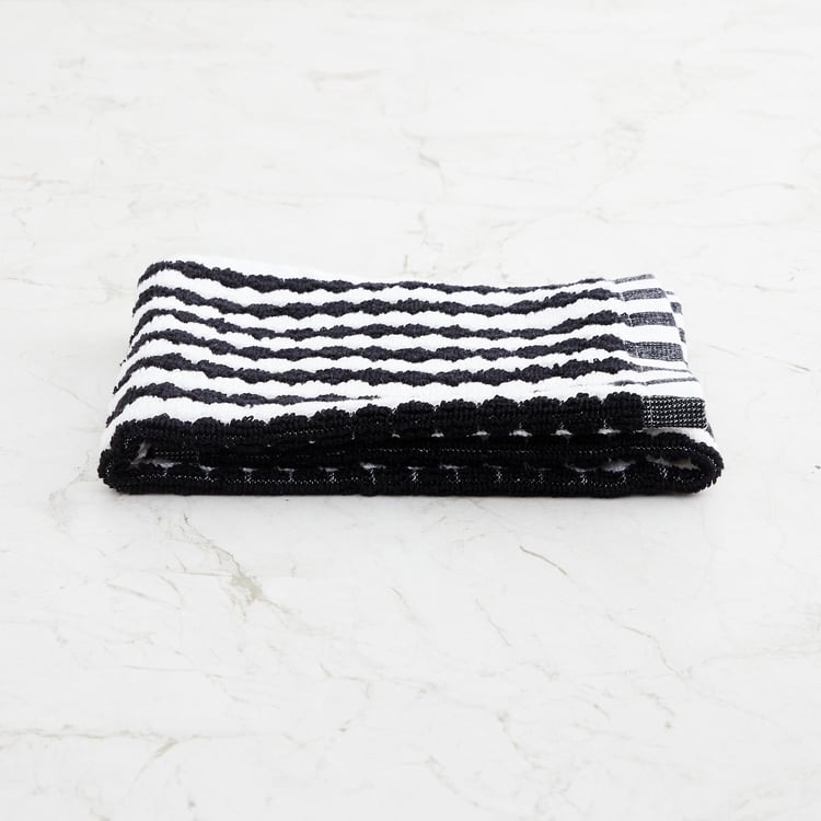 This plush hand towel features a textured design along with a bordered detail. It is super soft and skin-friendly to avoid dryness and burns after use.