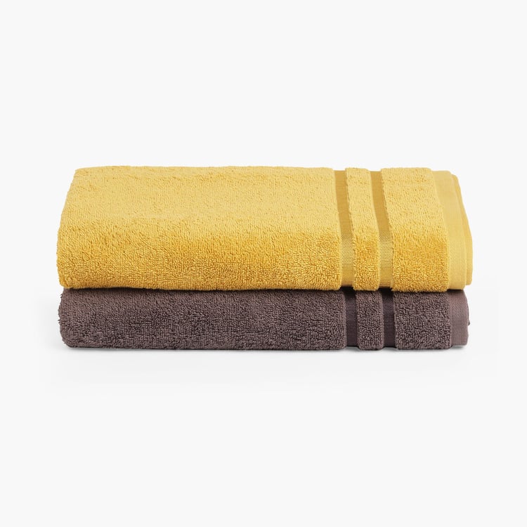 SPACES Atrium Eoss Mustard and Brown Textured Cotton Bath Towels - Set Of 2 - 70x150cm