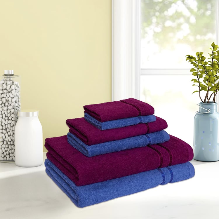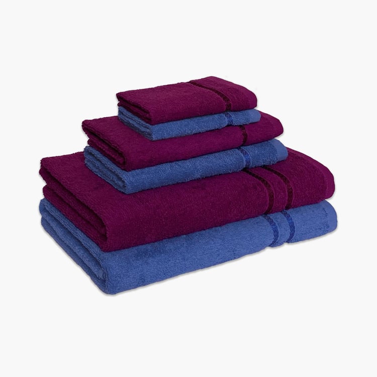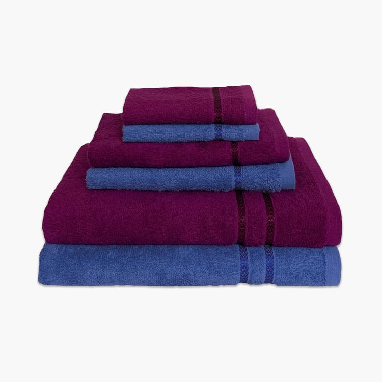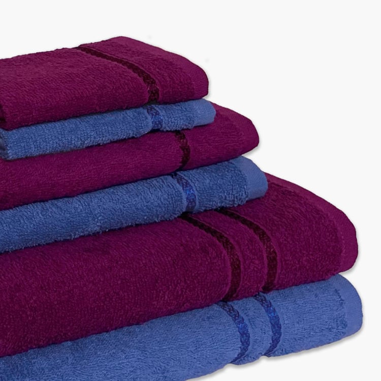 Bring plush comfort to your bath space with this towel combo set. It is made of cotton that is durable, quick to dry, and easy to maintain. This set includes a pair of bath towels, a pair of hand towels, and a pair of face towels in two different colourways.