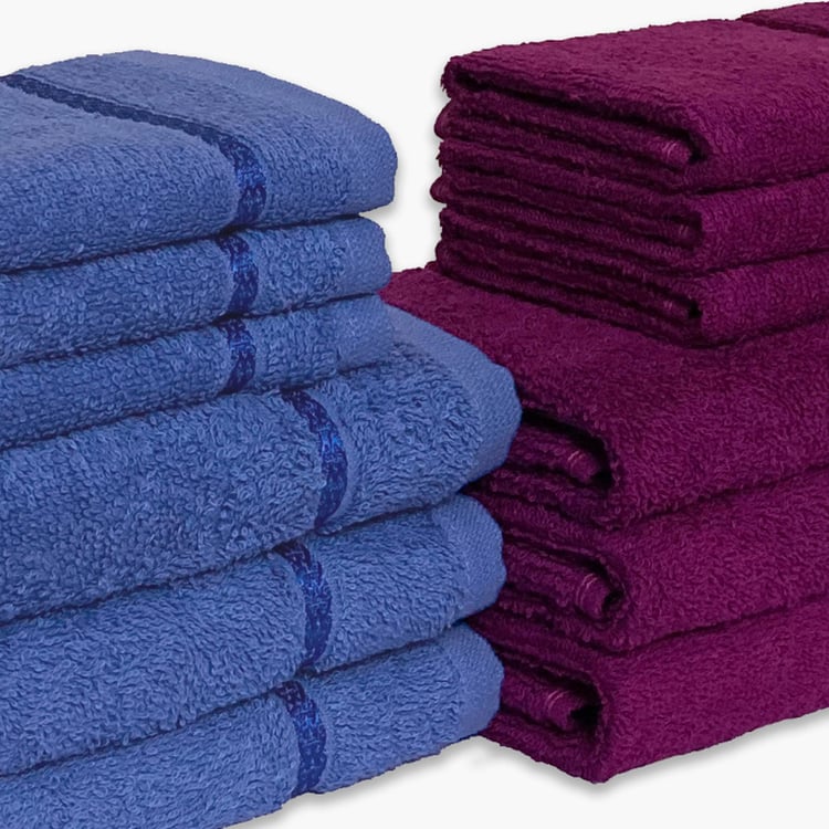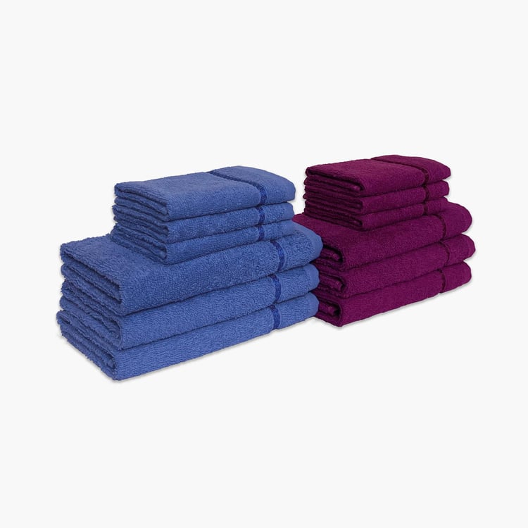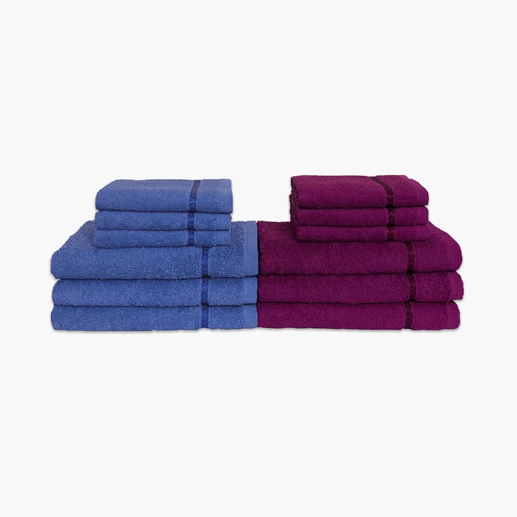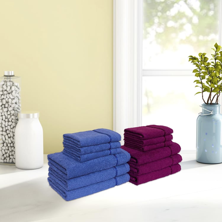 SPACES Seasons Best Qd Cotton Bath Towel Set, Magenta & Navy Blue - 71 x 41 cm