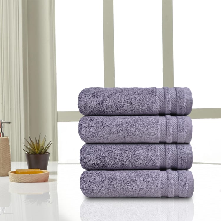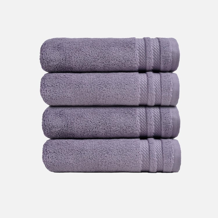 TRIDENT Finesse Purple Textured Cotton Hand Towels - 71x41cm - Set of 4