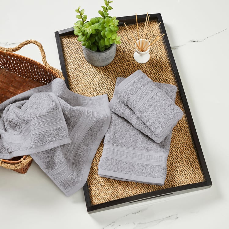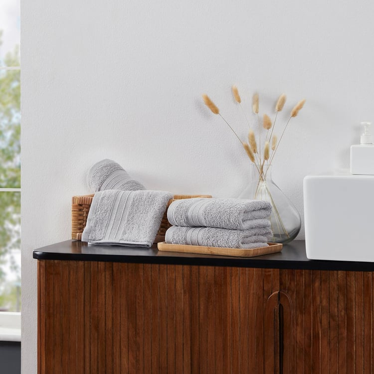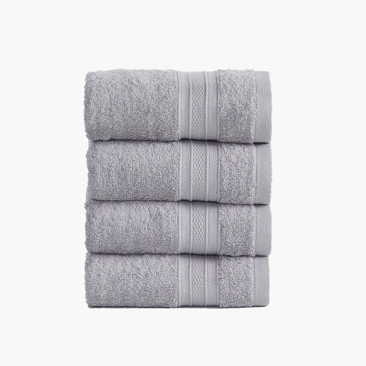 TRIDENT Soft and Plush Grey Textured Cotton Hand Towels - 41x66cm - Set of 4