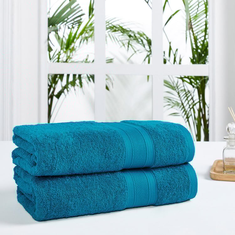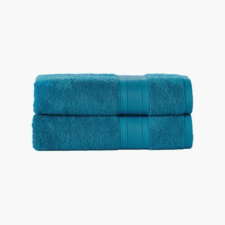TRIDENT Soft and Plush Teal Solid Cotton Bath Towel - 90x180cm - Set of 2