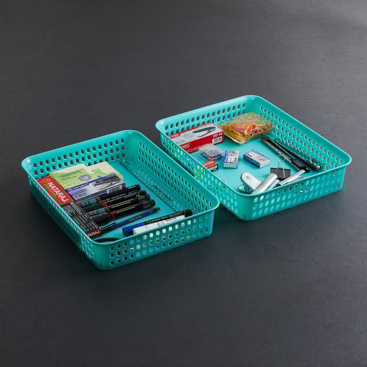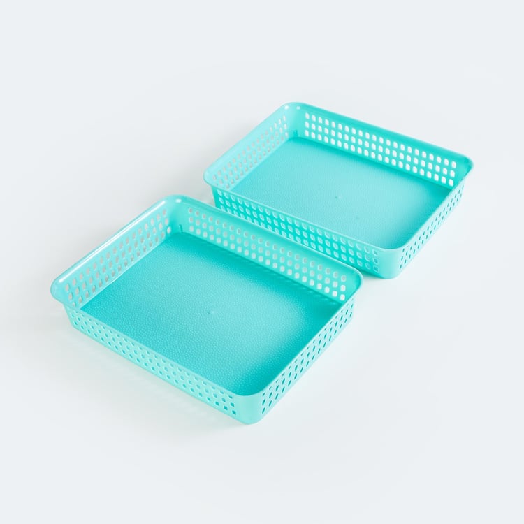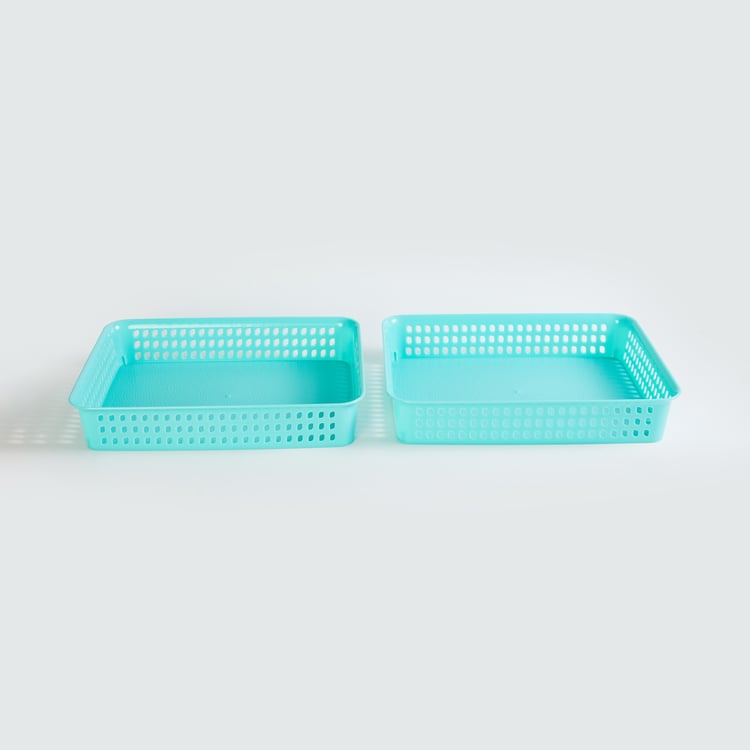 Versatile and durable, this set of storage baskets is a must-have in your bathroom, laundry room, or wardrobe. Made of polypropylene, these baskets are durable and easy to maintain. The cut-out design makes it breathable and the stackable profile makes it easy to store. This set includes 2 baskets to store your necessities.