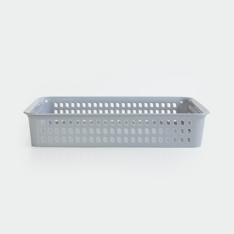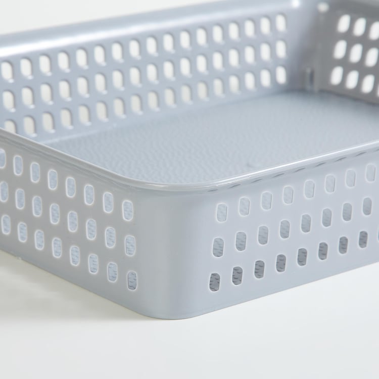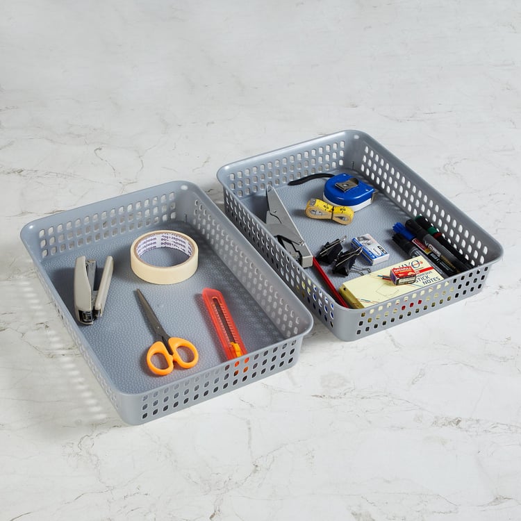 Keep your space clean and organised with this set of baskets. Made of polypropylene, it includes 2 baskets with cut-out sides that are ideal for storing myriad items. This stackable design can be used anywhere in your home from the study room to the bathroom.