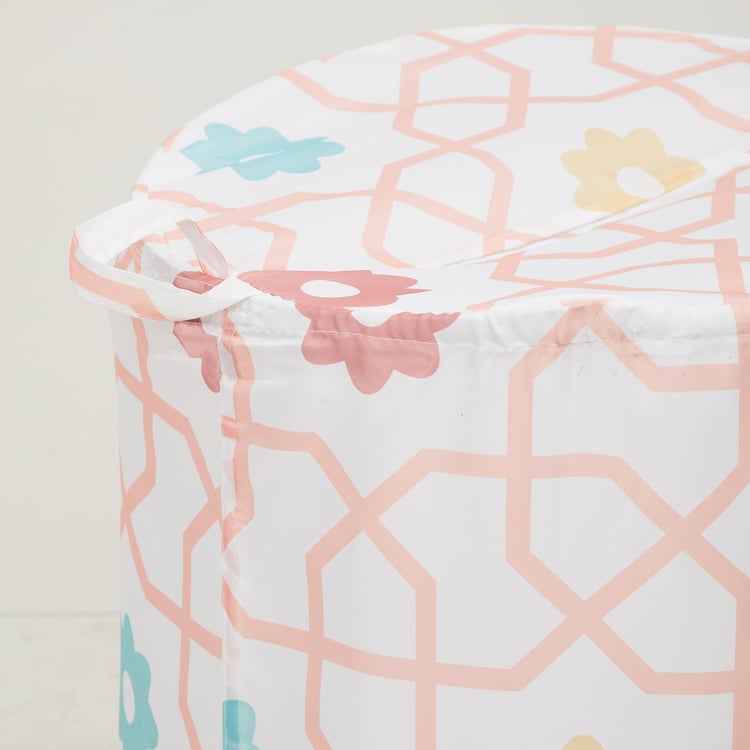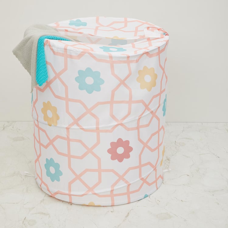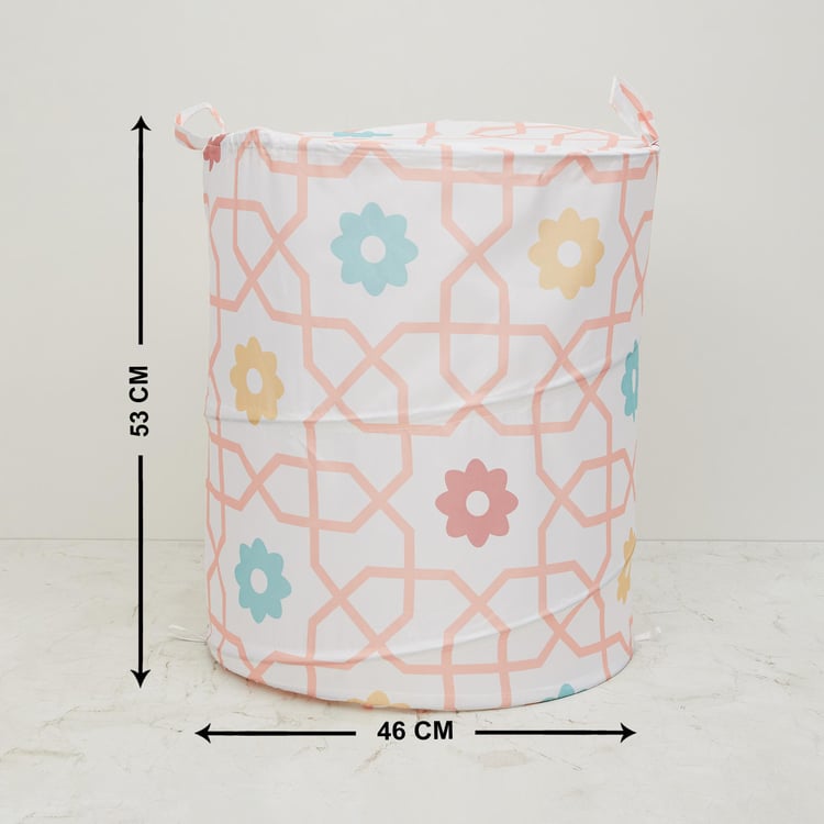 Crafted with fine polyester, this printed laundry basket is an ideal pick to keep your clothes organized. Complemented with a foldable feature, this basket always comes in handy.