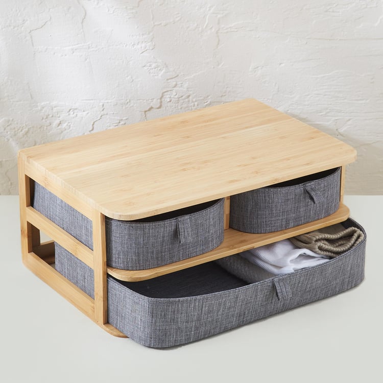 Regan Bamboo 2-Tier Organiser with Fabric Drawer